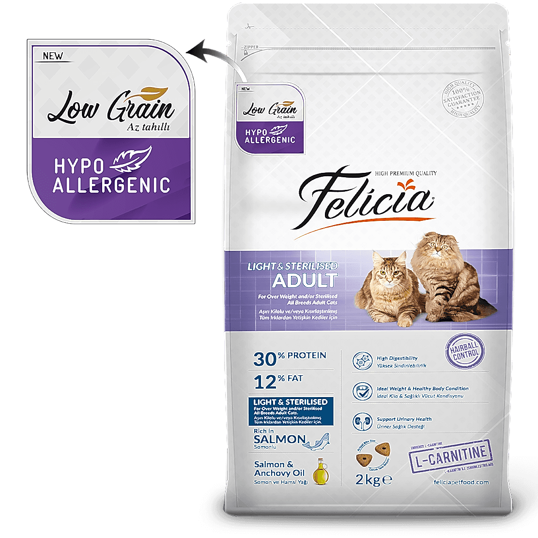 • Felicia Light&Sterilised  Somonlu Kısır Kedi Maması 2 Kg